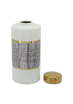 Best deal ๐ Kingston Living 13″ White and Gold Ceramic Jar with Lid โจ