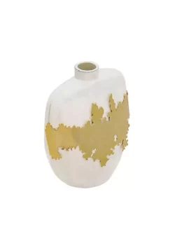 Best deal โ Kingston Living 10″ White and Gold Abstract Stripe Tabletop Vase ๐งจ