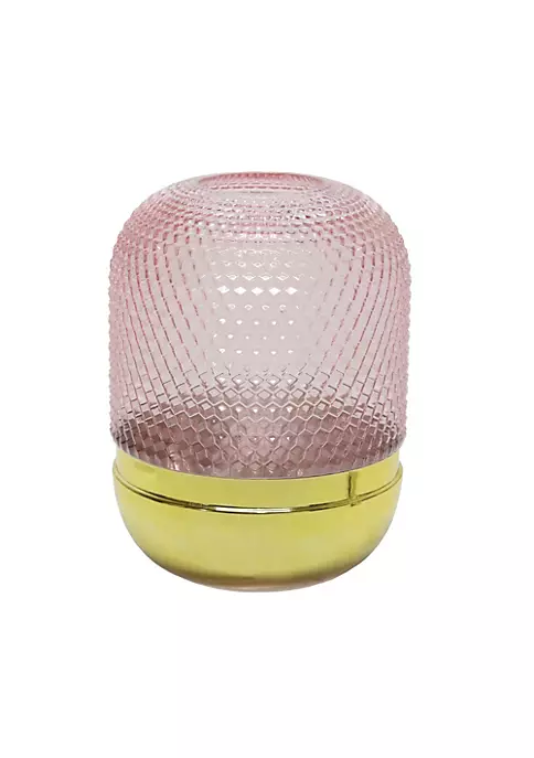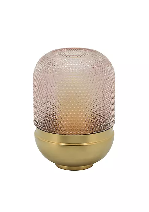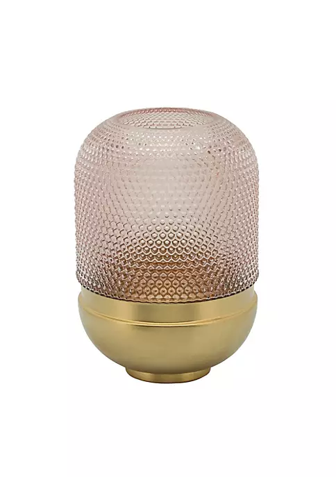 The artistry of this magnificent piece of glass and metal will wow you. Its pink glass body is situated on a gold metal base giving it a modernistic feel. The complex pattern of textured dots on the glass gives it a rich feel and an opulent appearance. It would be a lovely way to display your gorgeous flowers and foliage as well as other objects like pillar candles. So let this beauty in and let the feeling of luxury wash over you.