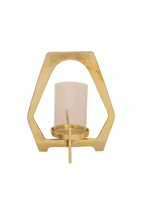 This uniquely designed hurricane candle holder will be an ideal choice for your home decor. Crafted from metal it has a gold finish. Helping to create a warm glow you can place this elegant decor piece in any room of your choice. It will be an ideal gift for your loved ones.