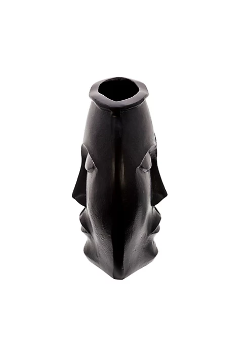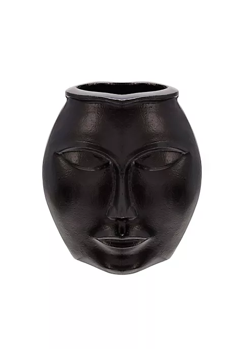 Create a posh and luxurious appeal to your home interiors with this statement piece. Crafted with metal and a black finish it also features face carving on its sides. Complete your table decor with this lovely table accent that strikes the right balance between form and function.