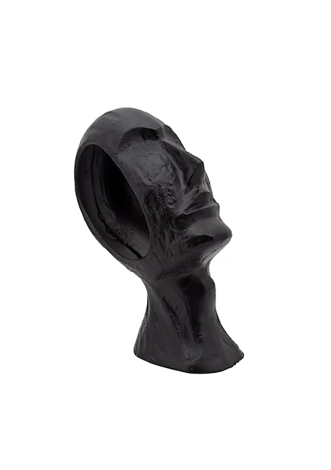 Lend a contemporary touch to your stylistic layout with this artistic metal sculpture. Portraying the human face in a black finish it symbolizes the thinking man. Simplistic yet inspiring it could be an optimal highlight to your tabletop counter mantle and shelf. This handsome piece of craftsmanship is strong and can be passed down for generations.