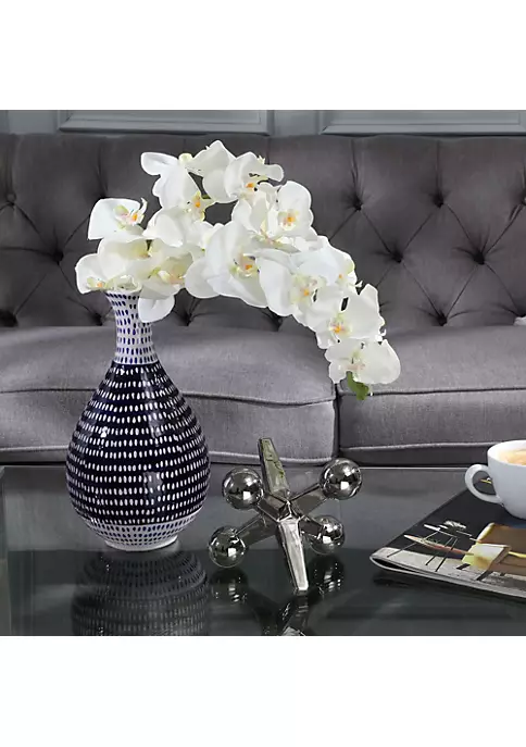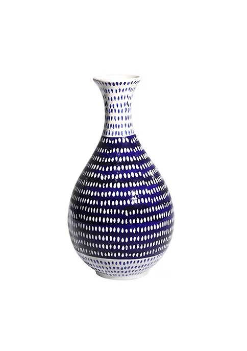 Vases add character to your room and this vase is calling out your name! This ceramic decor piece is exceptionally versatile to every environment as it adds a pop of blue and white wherever placed. The beautifully spotted vase can be placed next to curtains on a table or even in the corner of a room!.