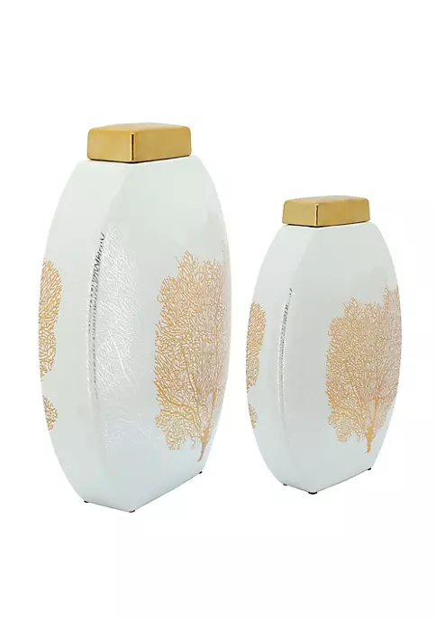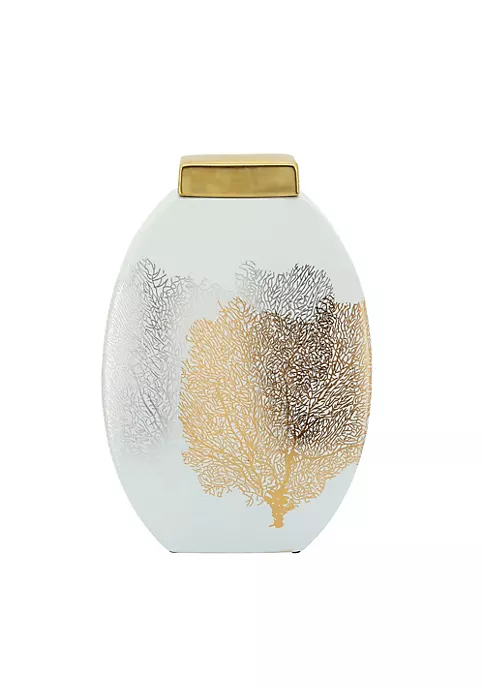 Add a pop of color to your kitchen island or dining table by introducing this decal jar. Crafted with ceramic it has a golden lid. Nature-inspired designs on the exterior will leave you in awe. You can also gift this attractive piece to your loved ones.