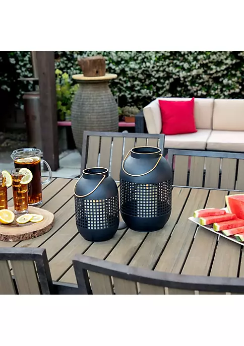 The beauty of this lantern lies in its modern and contemporary style. It features a metal frame of black hue with a glass candle holder on the inside. The golden handle adds just that touch of gloss. Its geometric design can effortlessly complement various home decor styles. So hang it from a ceiling or use it as a tabletop display. It will never fail to impress.