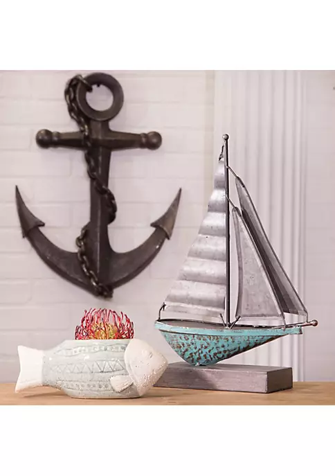 Bring home a beach vibe with this antique-looking sailboat figurine. The decor piece has a rustic wooden sailboat mounted on a block of wood. You can place the figurine on a table shelf or wherever your heart desires! The subtle blue and brown color allow the accent piece to blend into the furniture seamlessly.