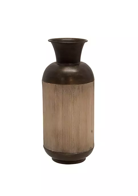 Display a farmhouse charm in your decor with this decorative jar that resembles a milk can. Crafted with fir wood and iron it has an amphora-shaped design with a weathering well-worn accent. This brilliant addition is a perfect centerpiece for your table or floor or even ideal to stage your favorite florals.