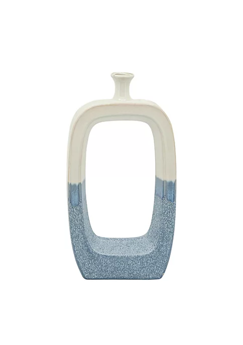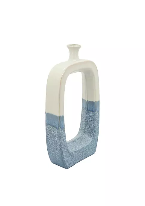 Striped with soothing blue and off-white tones this ceramic vase has a speckled finish. Displaying a coastal flair it features a novelty cut-out design. Adding an artistic touch to your room decor this attractive centerpiece will surely grab eyeballs. You can also use it to display your favorite plants. Accenting your shelf or desk this decor piece is apt for your living room drawing room bedroom or study.