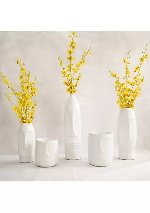 This white vase will appeal to all for its quirk and intrigue. Crafted from ceramic it is sculpted to a human face using simple etchings. The carvings are executed realistically and with finesse and it is polished to a smooth finish. Leave this as a standalone piece on your tabletop counter or desk and it will add a touch of whimsical and fun to your decor. You could also add in your freshest blossoms to bring in some cheer.