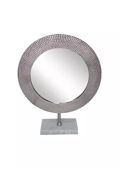 In the event that your work area or table requires a bit of present-day styling this is the enhancement for you. This mirror is set in a circular silver finish frame with great detailing. The marble base gives it a steady balance while you eye yourself. Place it in your parlor or room or just perch it on a rack or mantle. This glamorous piece will beautify you and your surroundings with its presence.