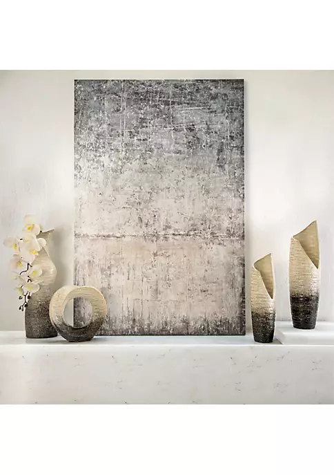 If you are looking for a stylish addition to your modern setting then this ceramic vase is for you. This vase in cream stands out for its twisted and elegant curves. It is two-toned having a cream hue at the top that slips into brown at the bottom in ombre technique and is polished to a smooth glaze. You could just leave it solo on your tabletop desk counter or mantle or you could fill it with fresh flowers and add a touch of nature to your home.