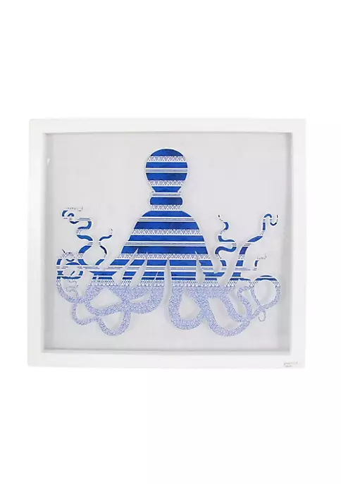 This white-framed blue octopus art will add character to your room decor. Crafted with perfection this decorative wall art accents your wall spaces with elegance. It will be a fabulous addition to your drawing room bedroom living room office suite etc. This decor piece will be a fabulous gifting option for art enthusiasts.