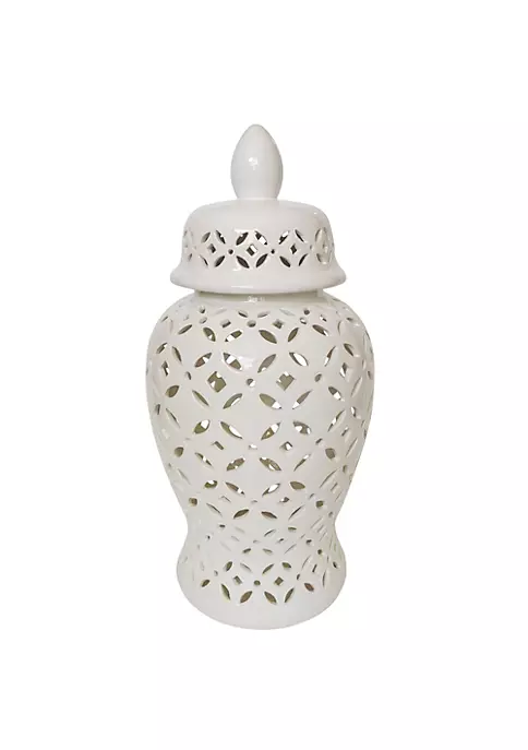 Displaying a glossy finish this temple jar will be the ideal choice to spruce up your console table or fireplace. Crafted with ceramic the daisy cut-out design will leave you in awe. This stand-alone piece will also be an ideal gift for your loved ones.