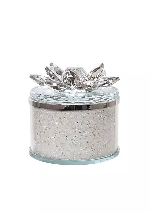 This decorative box is a luxurious tabletop style piece. The crystal lotus flower on the lid has a beautiful white sparkle effect and splendid floral presentation. The container permits you to safely store items of personal value. Use this accessory to remove clutter and beautify your vanity bedroom living room and such. You could likewise gift it to a loved one.
