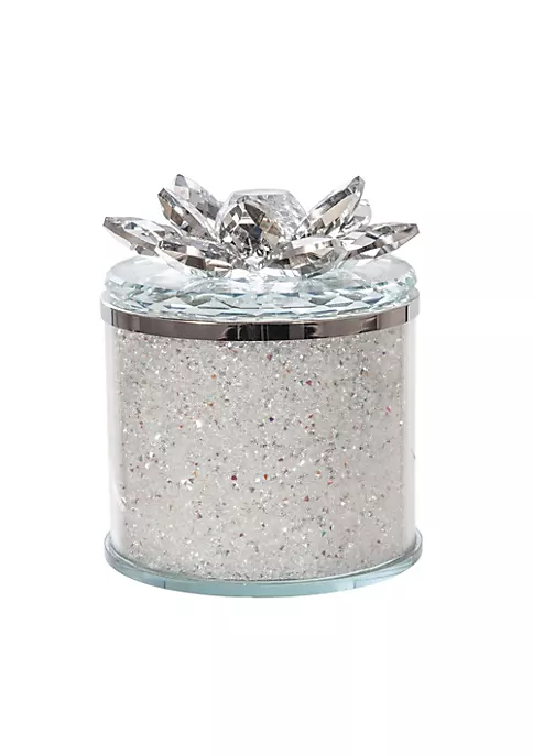This decorative box is a luxurious tabletop style piece. The crystal lotus flower on the lid has a beautiful white sparkle effect and splendid floral presentation. The container permits you to safely store items of personal value. Use this accessory to remove clutter and beautify your vanity bedroom living room and such. You could likewise gift it to a loved one.