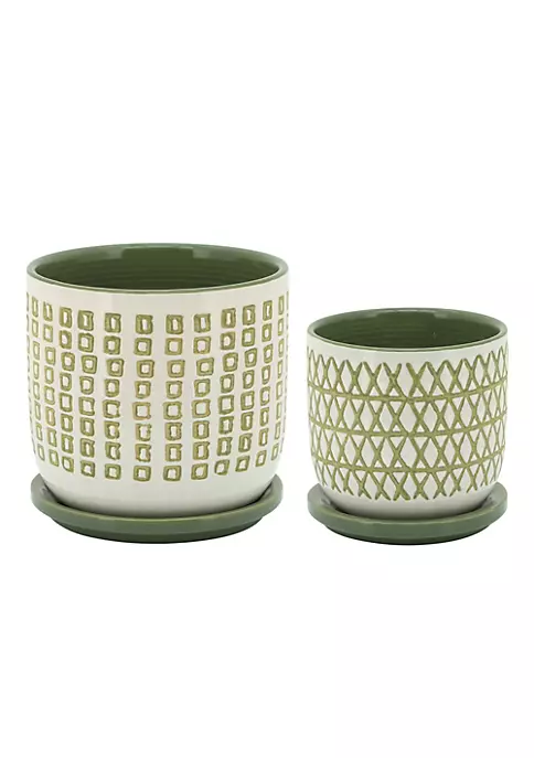 Arrange a stunning floral display with this lovely planter. Made with high-quality ceramic it has drain holes in the center and a saucer glued to the planter. The X-patterns perfectly complement the matte finish. This beautiful addition is apt for your home garden terrace balcony etc.