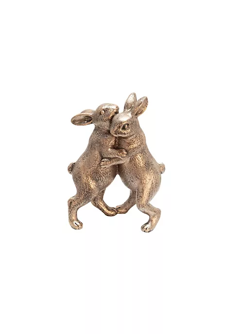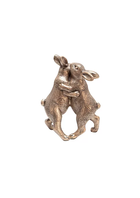 Nothing can be more adorable than this hugging bunny figurine! This cutesy copper-colored resin accent decor features two merry bunnies hugging! Place it on a shelf or your bedside table to show off your quirky personality. The unique and versatile color of the piece allows it to seamlessly blend into the environment while adding to the spirited vibe of the room!