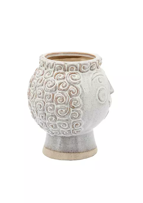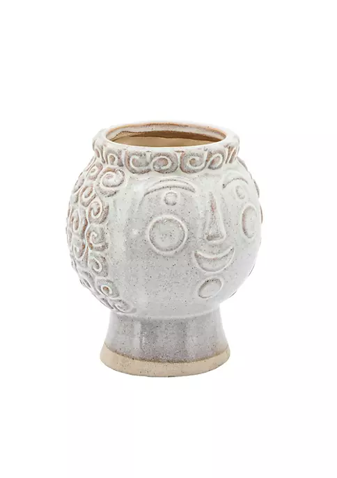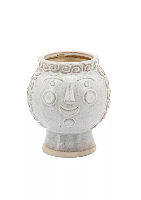 Give a modern edge to your home decor with this Grandma face planter. This ceramic planter with a grandma face carving on the exterior is a fun way to display your plants indoors or outdoors. With an ivory tint and intricate sculpting this planter lends a charming touch to your ambiance. You can also gift this to your grandmother who loves gardening!