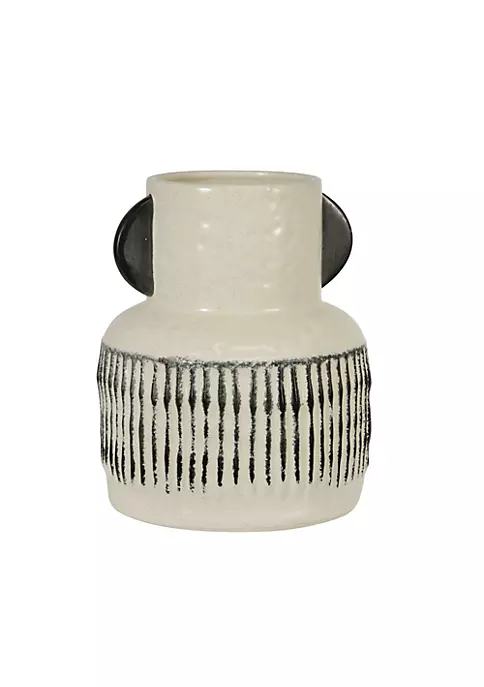 Ensure to add this distinctive decor piece to your home to create a refined look. This ceramic eared vase in white tone comes in a black and white combination. With handles on the sides and round bottom this antique bottle vase looks great on your mantle console or kitchen counter. You can use it to display your favorite tulips or use it as a table accent to enrich any corner of your abode.