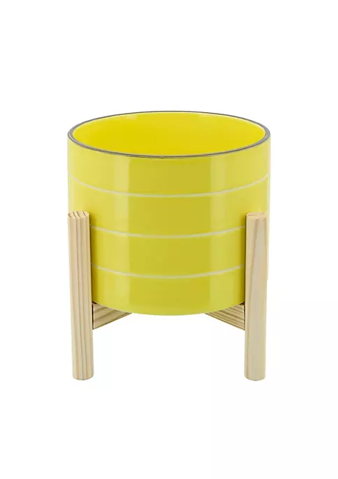 This beautiful yellow footed planter will capture your heart with its winsome appeal. Crafted from ceramic its bright colors and beautiful geometric design of stripes are finished to a smooth polish. Just place in your lively greens and colors and they will enhance any corner of your room or garden to an extraordinary charm.