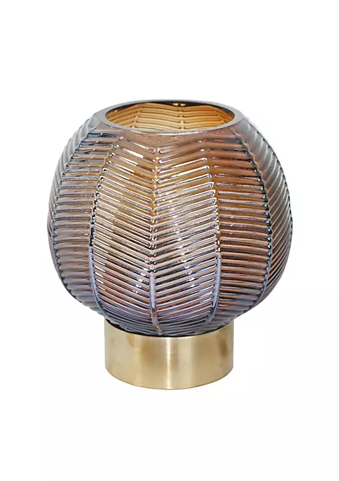 If you want to add a touch of bohemian to your living room then bring in this beautiful glass vase in brown and gold. The leaf-like chevron pattern on its circular frame is completed to perfection and gives it a distressed highlight. It is based on a round metal frame of a golden hue. It would serve perfectly as a solo decorative piece or to house other things from flowers to decorative candles.