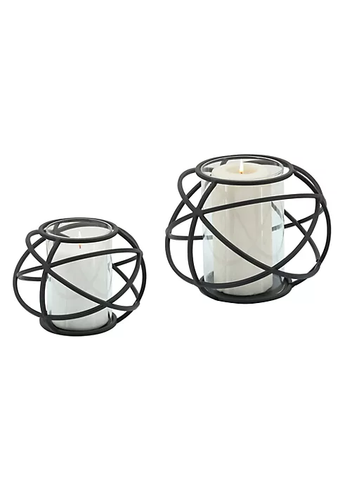 Cheap 🧨 Kingston Living Set of 2 Black Glass Decorative Orb Candle Holders 8″ πŸ₯°