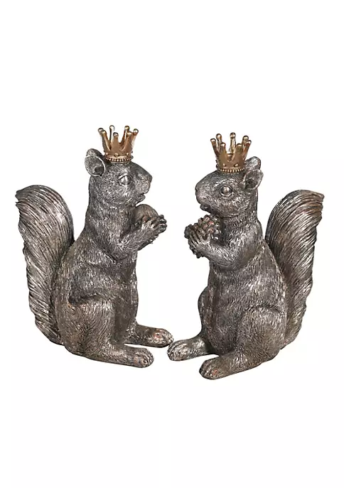 Enjoy these stunning woodland squirrels figurines that will seemingly come to life in your garden! Amazingly detailed this set of sculptures depicts crowned squirrels with nuts. The silver finish adds elegance to the decorative pieces. Durable these squirrels make for delightful little accent pieces for the tabletop.